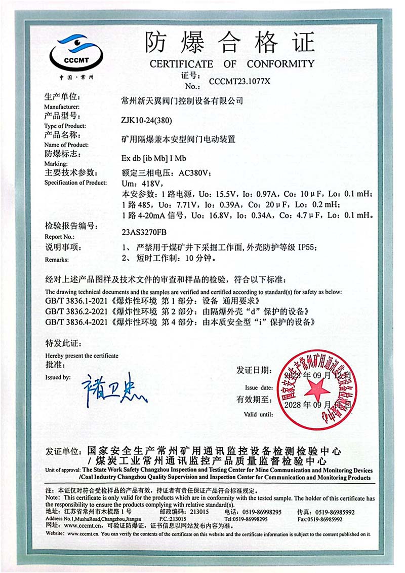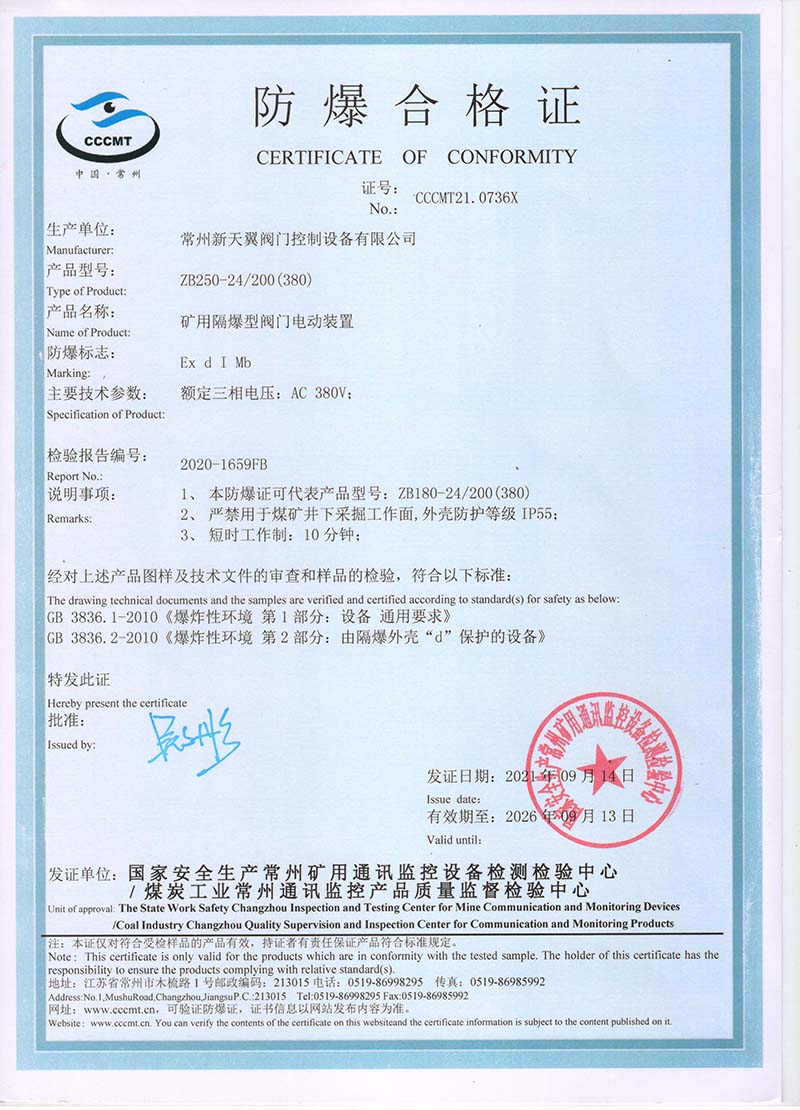 ZB20-24 200(660) 防爆合格證